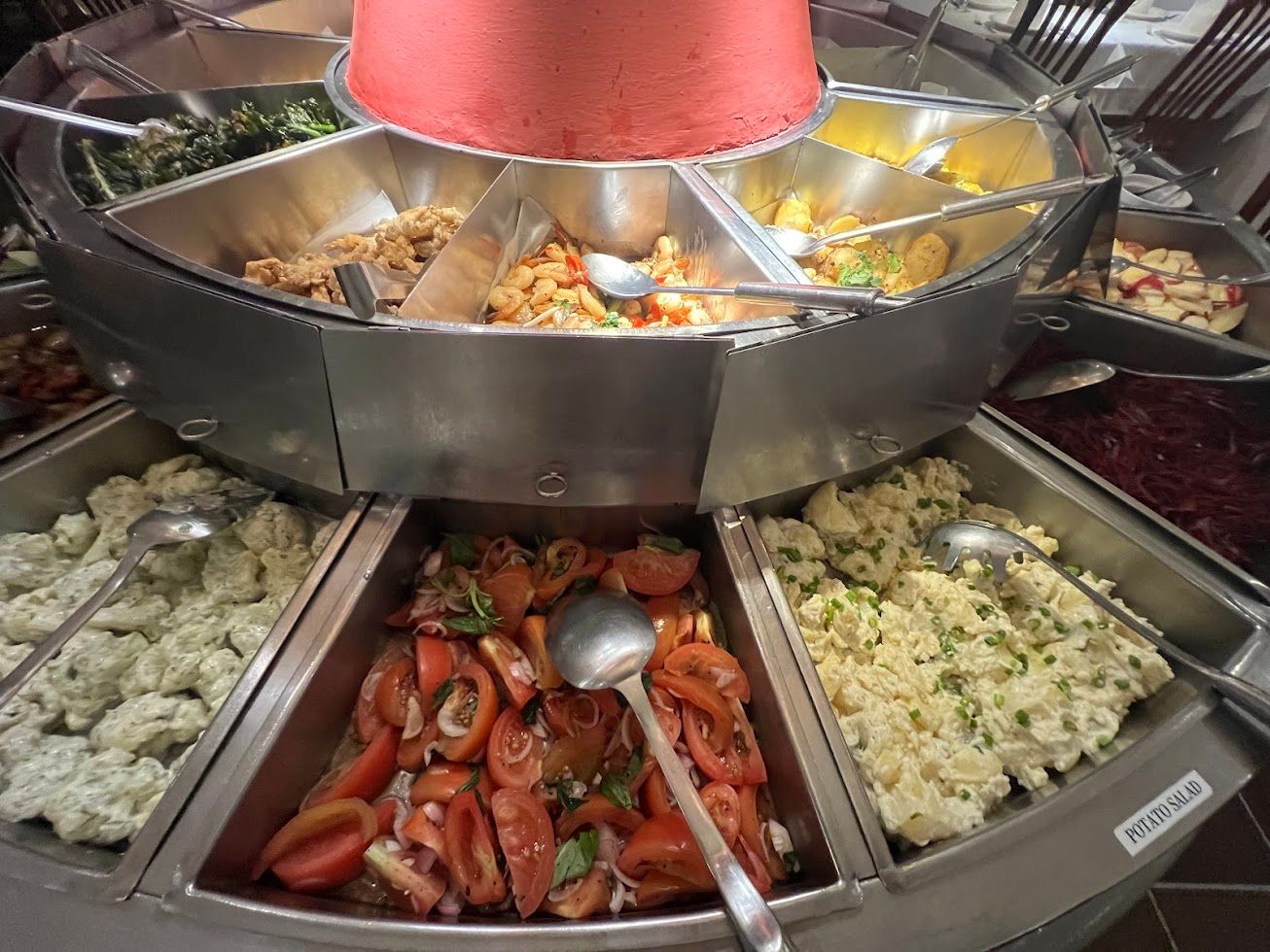 The self-service salad bar at Brazil Churrasco is more substantial than its supporting-act status might suggest. Alongside fresh greens and crisp vegetables, expect heartier Brazilian staples: feijoada (black bean stew), farofa (toasted cassava flour), heart of palm, egg mayo, sautéed onions, grilled capsicums, and even fried kailan — the latter a quietly beloved local touch that cuts through the richness of the meat with a welcome bitterness. Fried banana rounds out the spread, adding a caramelised sweetness to the mix.