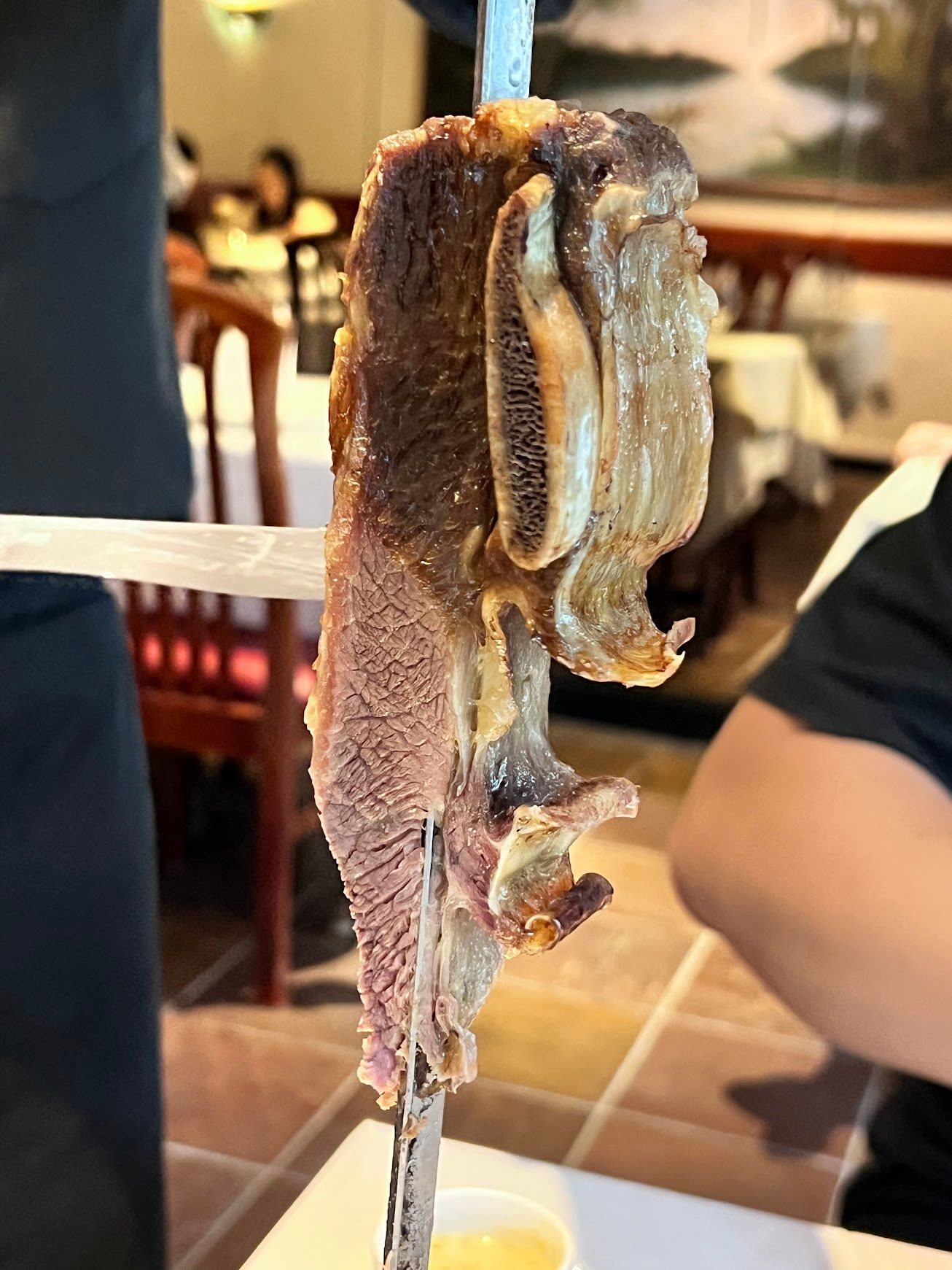 If picanha is the crowd favourite, cupim is the deep cut for those in the know. Taken from the hump of Zebu cattle, this uniquely Brazilian cut is threaded with intramuscular fat that breaks down over long, slow cooking into something extraordinary — silky, yielding, with a depth of flavour that more common beef cuts simply cannot match. It’s a rarity outside of Brazil, and having it carved tableside in a Singapore neighbourhood restaurant makes the experience all the more remarkable.