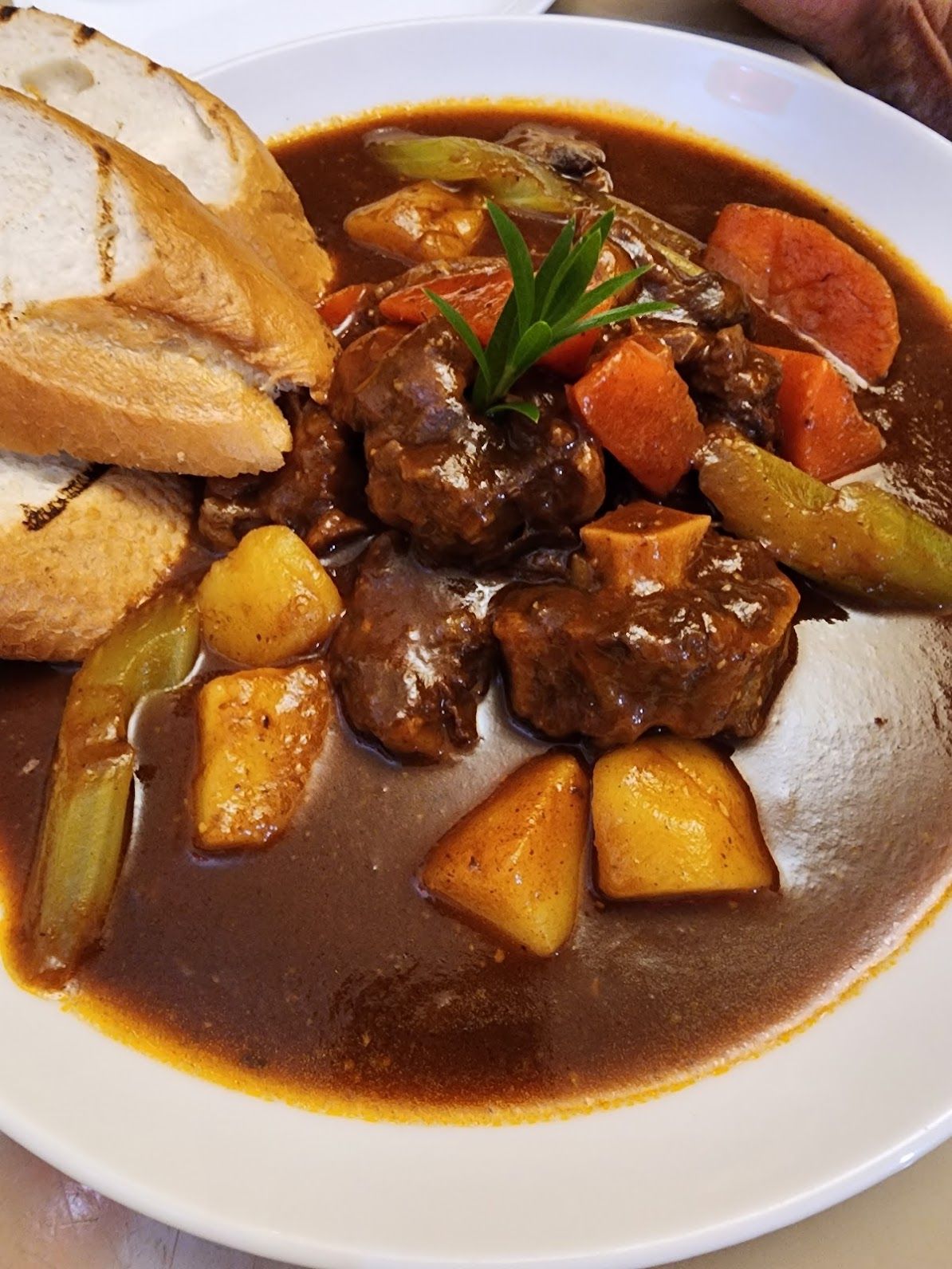 This is the dish that put British Hainan on the map — ranked among the top three oxtail stews in all of Singapore within just a year of opening. Three generous portions of oxtail arrive braised for a full six hours until the meat practically dissolves off the bone at the slightest touch of a fork. The stew is built with sweet potato, butter, and olive oil, loaded with carrot, potato, onion, and celery, and finished with a glossy, deeply aromatic sauce that carries an earthy richness with notes of natural tomato sweetness. Toasted baguette slices come alongside — essential for mopping up every last drop of the sauce. No MSG, no added sugar, no commercial BBQ sauces: just clean, honest cooking that lets the oxtail speak for itself. This is comfort food at its most refined, and its portions are generous enough to share between two.