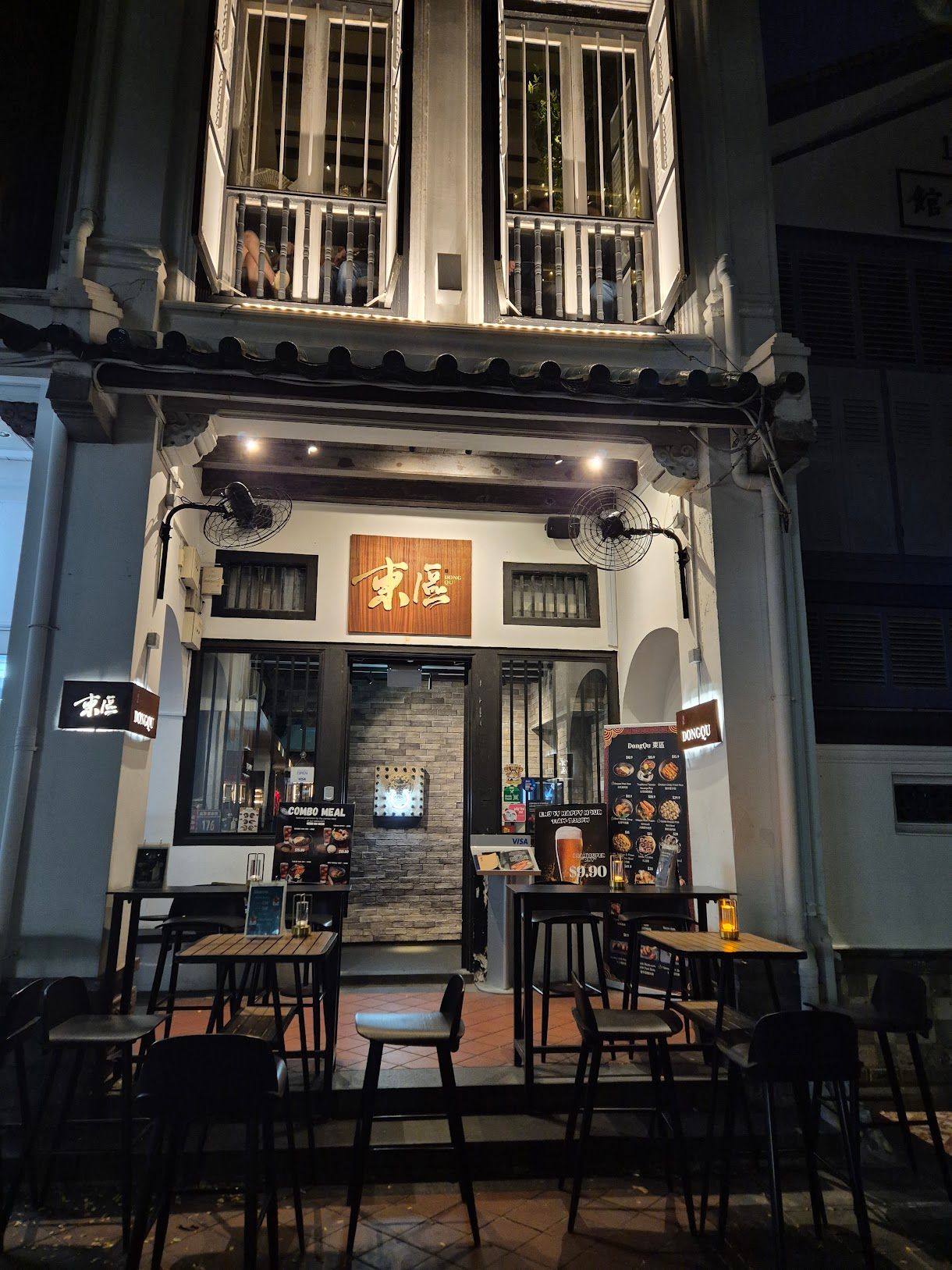 Each level of the Dong Qu shophouse is its own world. The ground floor anchors the experience with walk-in accessibility and an outdoor seating option that works well for casual evenings. Moving upward, the space shifts register — from a colonial European-style room to a dreamy cloud-lit level, a retro 1980s Hong Kong-styled floor, an ornate oriental temple-esque space, and finally a rooftop that closes out the night. Each floor carries its own cooking focus and atmosphere, meaning a group can spend an entire evening moving between levels and feel like they’ve dined at five different restaurants.