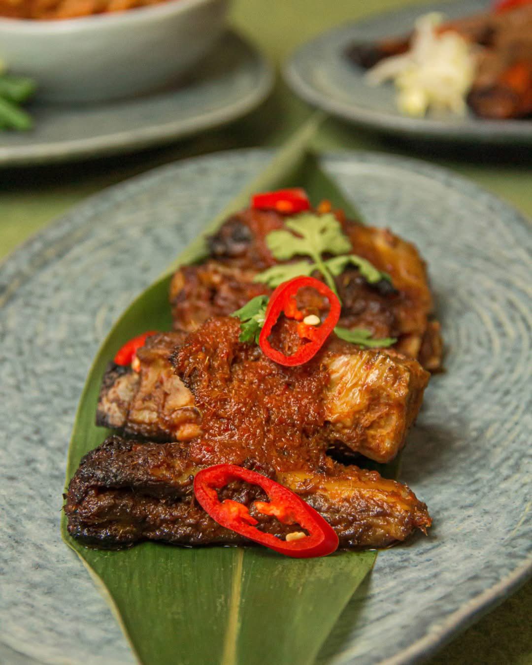 The Lamb Percik features crispy Australian lamb short ribs marinated in coconut milk and tamarind, then charcoal-grilled until the edges char and the flesh stays tender. It’s an unapologetically bold sharing plate — smoky, tangy, and deeply lemak. Not the kind of thing you’d find at your neighbourhood nasi lemak stall, and that’s precisely the point.