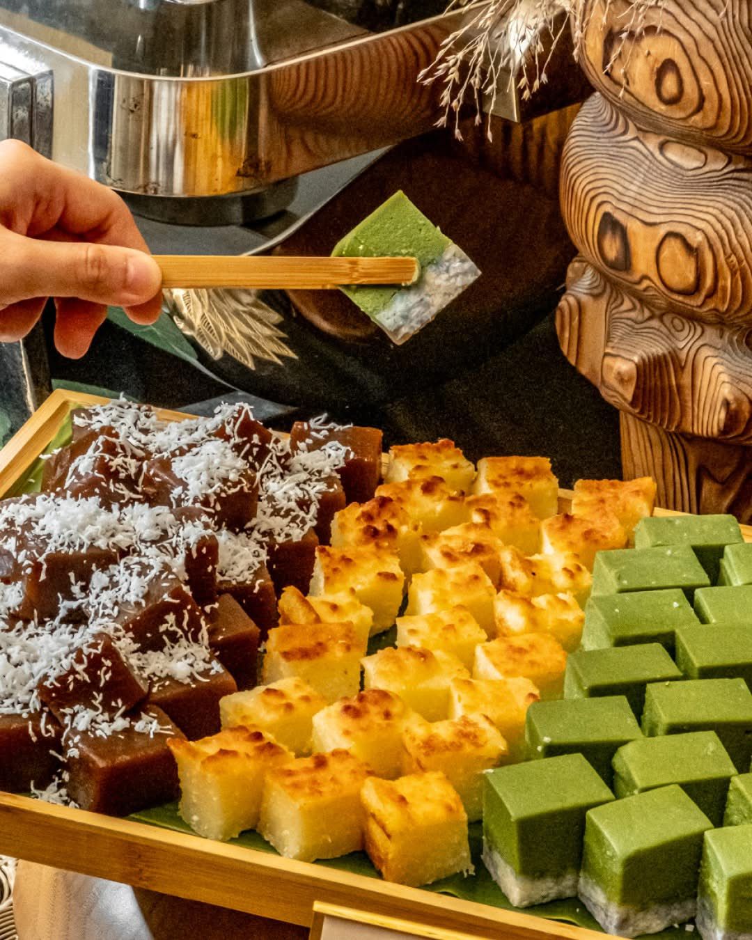 An assortment of kuehs meticulously hand-crafted in-house — some familiar, some forgotten — refined in collaboration with Singapore’s kueh expert Christopher Tan. Each piece is an ode to coconut milk in a different form, from texture to sweetness. Order a selection to end the meal on a properly local note.