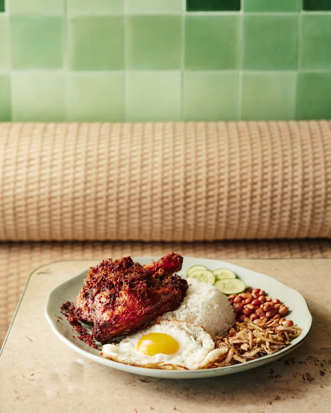 This is what people come for, and it delivers. The rice is made using 2-year-old Thai Jasmine infused with coconut milk and steamed to perfection, while the organic chicken is marinated for 12 hours in a house-made rempah before being fried to order. The result is a bird with deep, layered spice on the outside and tender, juicy meat within — a far cry from the lukewarm wings you’d get at a casual hawker stall. The rice is cooked using cold-pressed coconut milk extracted on-site , giving it a clean, fragrant coconutty character that isn’t heavy or greasy. Each set comes with a fried egg, house-made sambal, cucumber, ikan bilis, and peanuts — all the classics, done with care.